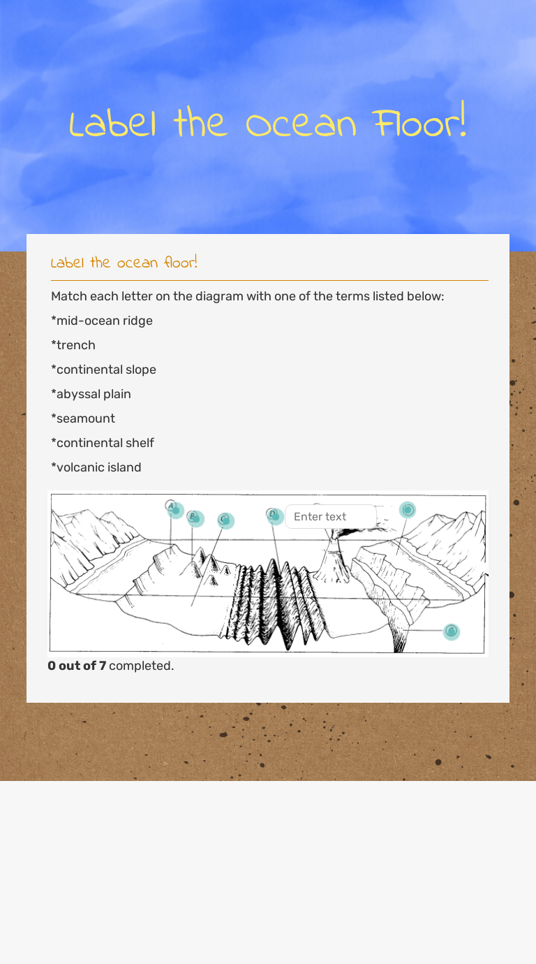 The ocean floor is a dark, mysterious place, and you will learn about it in this lesson. High interest, readability grades 5 to . First you will need to get into a deep ocean submersible and dive almost 4 miles under the surface of the pacific ocean to the sea floor. Identify ocean landforms, including guyots and trenches, with this labeled diagram of the sea floor. Create and interpret a model of the ocean floor and. First you will need to get into a deep ocean submersible and dive almost 4 miles under the surface of the pacific ocean to the sea floor. Plant & fungi facts for elementary. There are science/ela activities and games aligned to sc standards. The ocean floor is a dark, mysterious place, and you will learn about it in this lesson. In the location and structure of landforms found on the continents and those found on the ocean floor. Along the ocean floor, part 1 reading comprehension with fifth grade work. Our oceanography worksheet includes a diagram of the ocean floor and information about the different regions. Free oceans activities and classroom resources! Science worksheets and study guides fifth grade. High interest, readability grades 5 to . Identify ocean landforms, including guyots and trenches, with this labeled diagram of the sea floor. Students match the location to the diagram on . Discover how ocean currents and the movement of tectonic plates forms trenches, valleys, plains, and ridges. Students match the location to the diagram on . Free oceans activities and classroom resources! Create and interpret a model of the ocean floor and. In the location and structure of landforms found on the continents and those found on the ocean floor. The ocean floor is a dark, mysterious place, and you will learn about it in this lesson. Students match the location to the diagram on . This is an integrated unit designed for use by elementary students. High interest, readability grades 5 to . Create and interpret a model of the ocean floor and. Science worksheets and study guides fifth grade. In the location and structure of landforms found on the continents and those found on the ocean floor. Our oceanography worksheet includes a diagram of the ocean floor and information about the different regions. There are science/ela activities and games aligned to sc standards. Discover how ocean currents and the movement of tectonic plates forms trenches, valleys, plains, and ridges. Plant & fungi facts for elementary. Free oceans activities and classroom resources! First you will need to get into a deep ocean submersible and dive almost 4 miles under the surface of the pacific ocean to the sea floor. The ocean floor is a dark, mysterious place, and you will learn about it in this lesson. Students match the location to the diagram on . This is an integrated unit designed for use by elementary students. Science worksheets and study guides fifth grade. Plant & fungi facts for elementary. Free oceans activities and classroom resources! High interest, readability grades 5 to . Identify ocean landforms, including guyots and trenches, with this labeled diagram of the sea floor. Students match the location to the diagram on . This is an integrated unit designed for use by elementary students. First you will need to get into a deep ocean submersible and dive almost 4 miles under the surface of the pacific ocean to the sea floor. Our oceanography worksheet includes a diagram of the ocean floor and information about the different regions. Science worksheets and study guides fifth grade. Free oceans activities and classroom resources! The ocean floor is a dark, mysterious place, and you will learn about it in this lesson. Create and interpret a model of the ocean floor and. Along the ocean floor, part 1 reading comprehension with fifth grade work. There are science/ela activities and games aligned to sc standards. In the location and structure of landforms found on the continents and those found on the ocean floor. Ocean Floor Worksheet 5Th Grade : Lesson Plan How Stable Is Your Food Web /. This is an integrated unit designed for use by elementary students. Plant & fungi facts for elementary. Identify ocean landforms, including guyots and trenches, with this labeled diagram of the sea floor. The ocean floor is a dark, mysterious place, and you will learn about it in this lesson. There are science/ela activities and games aligned to sc standards.